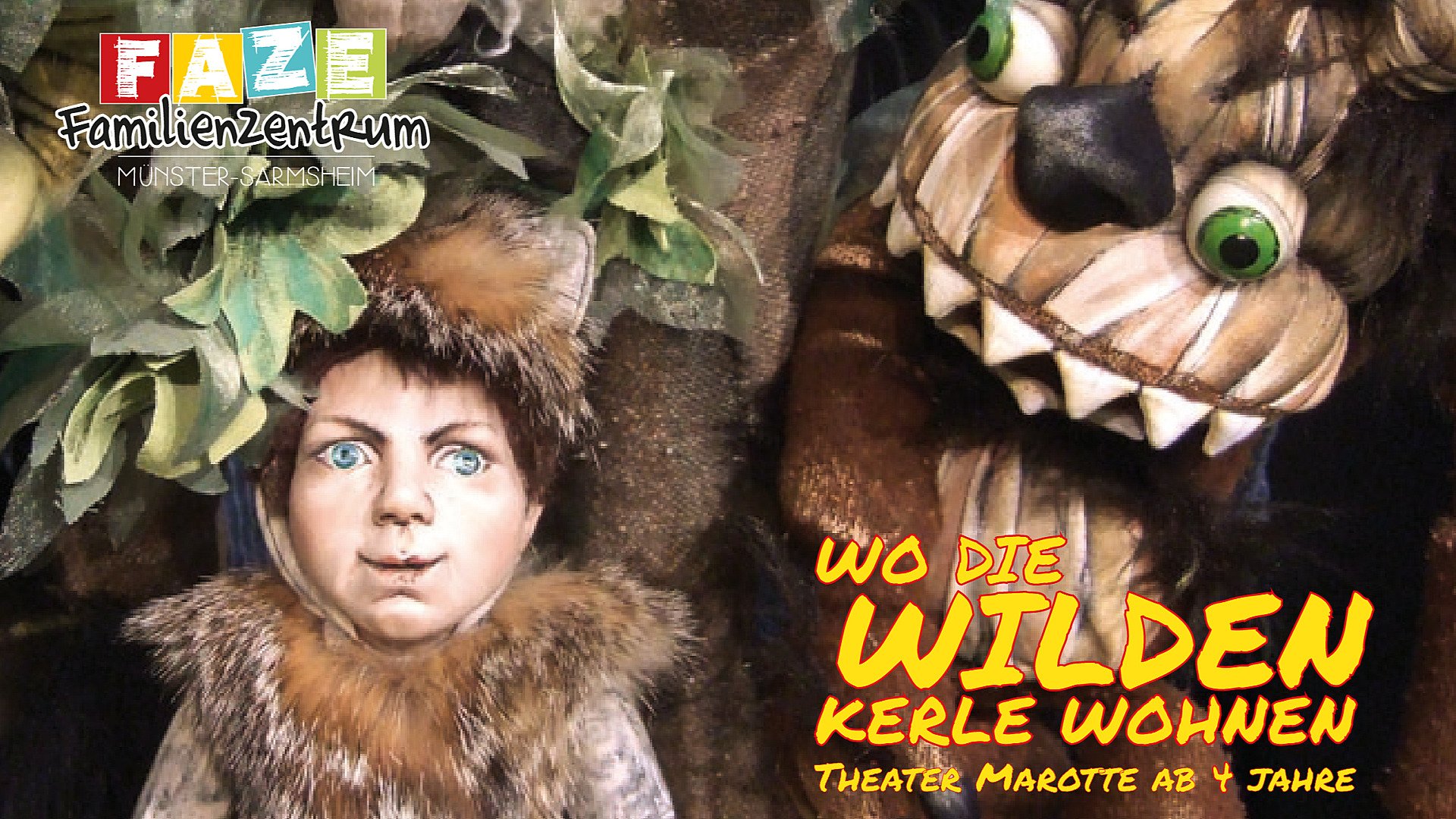 FIGURENTHEATER im Kultur- und Gemeindezentrum. An dem Abend, als Max seinen Wolfspelz trug und nur Unfug im Kopf hatte, schalt seine Mutter ihn “Wilder Kerl” und schickte ihn ohne Essen ins Bett. Genau in der Nacht wuchs ein Wald in seinem Zimmer – der wuchs – und wuchs. Und plötzlich war da ein Schiff, mit dem segelte Max davon, fast ein ganzes Jahr, bis zu dem Ort, wo die wilden Kerle wohnen... TERMIN : Sa. 01.11.25, 11 Uhr WER ? für Groß und Klein, ab 4 Jahren (bitte nicht jünger) WO ? Kultur- u. Gemeindezentrum BEITRAG : 6 € (freie Platzwahl) VORVERKAUF : ab 01.10.25 Bäckerei Grünewald, Mü-Sa, Rheinstr. 57 Online: www.ticket-regional.de/faze