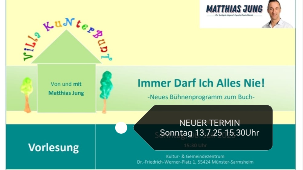 Ihren Zuhörern bringt sie nahe, was Pippi Langstrumpf und Facebook gemeinsam haben, warum Gott den Tod von Babbel-Bärbel fürchtet, wieso Gras mampfende Kühe keinen Burnout kriegen. Eine Bühnenkünstlerin, die mit ihrer Präsenz das Publikum auf eine musikalisch-poetische Reise nimmt. Auf der Bühne erlebt man Biber Herrmann als einen Entertainer und Geschichten-Erzähler, der, mit einer guten Prise Humor ausgestattet, in seinem erfolgreichen Leben „on the road“ seine Bodenhaftung behalten hat. Biber verbindet intelligente Texte mit einer kreativen, virtuosen Gitarre und einer gestandenen Live-Performance. Samstag, 22. Nov. 2025 Einlass & Bewirtung ab 18:00 Uhr Beginn 19:30 Uhr Tickets: Vorverkauf 18 € per E-Mail: kultur-ganz-nahe@t-online.de oder telefonisch: 01 55/60 43 38 25 Abendkasse 24 € Schüler:innen, Studierende und Behinderte erhalten 50% Rabatt (Nachweis an Abendkasse mitbringen!) „KulturBistro“ Kulturzentrum Dr.-Friedrich-Werner-Platz 1 55424 Münster-Sarmsheim