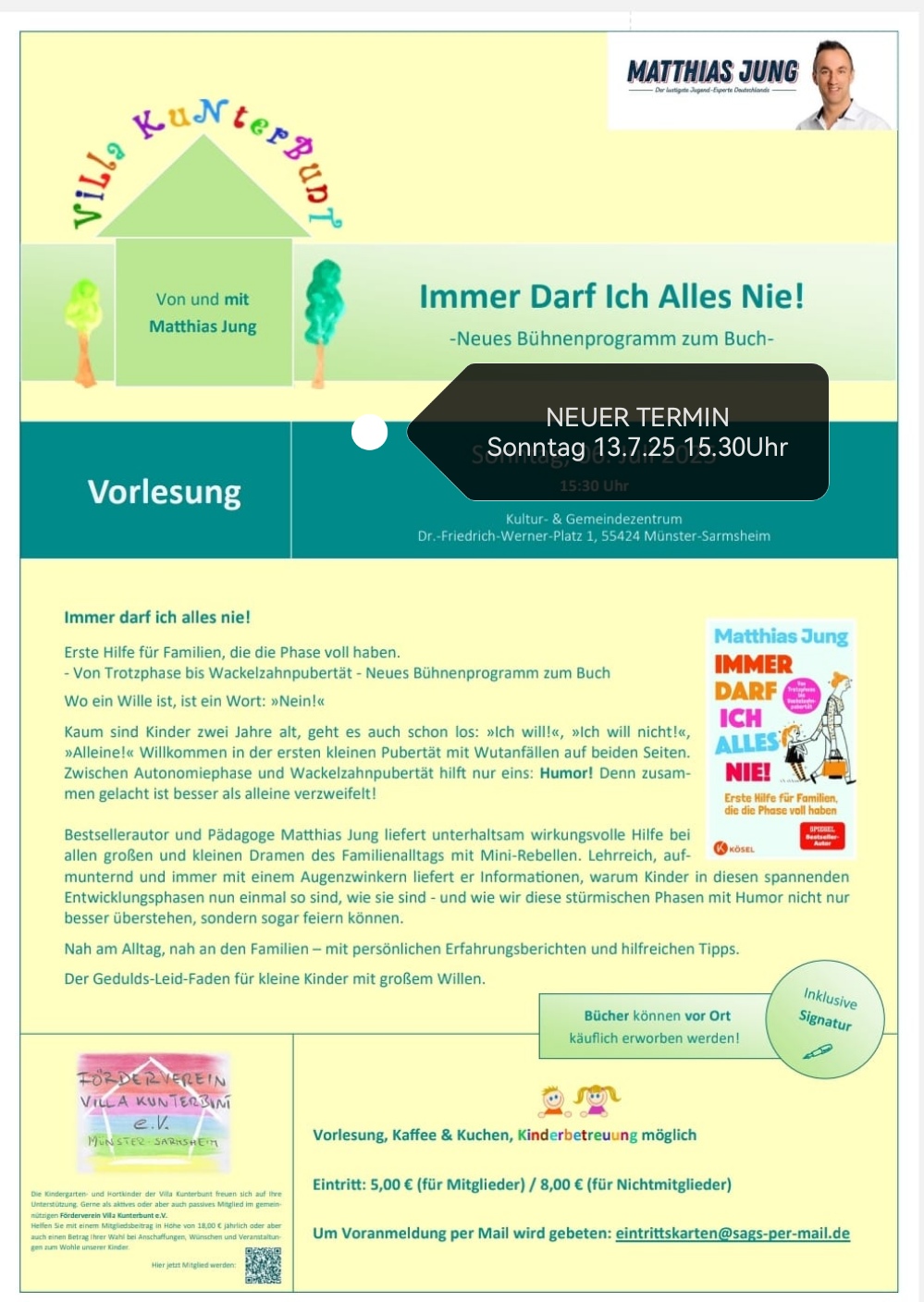 Eintritt 5€ für Vereinsmitglieder des Fördervereins Villa Kunterbunt